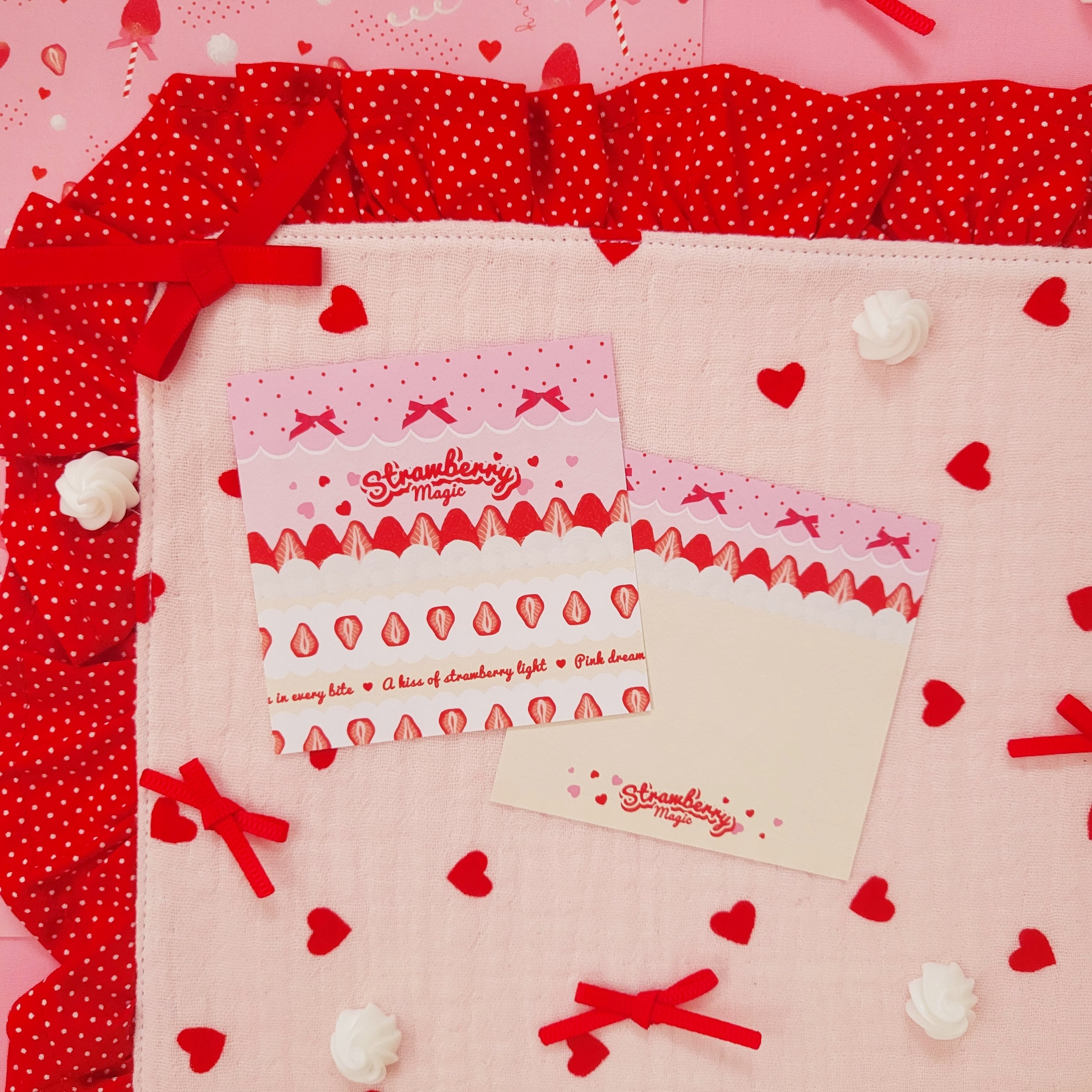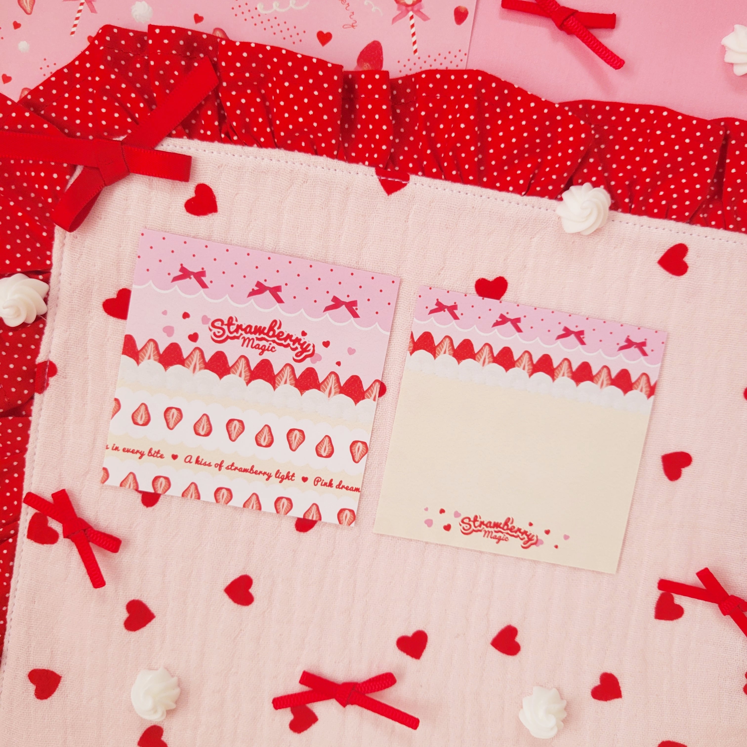 てのひらメモワール缶の中のメモ(いちごの魔法)|ミニスクエアメモ/両面印刷 #b67