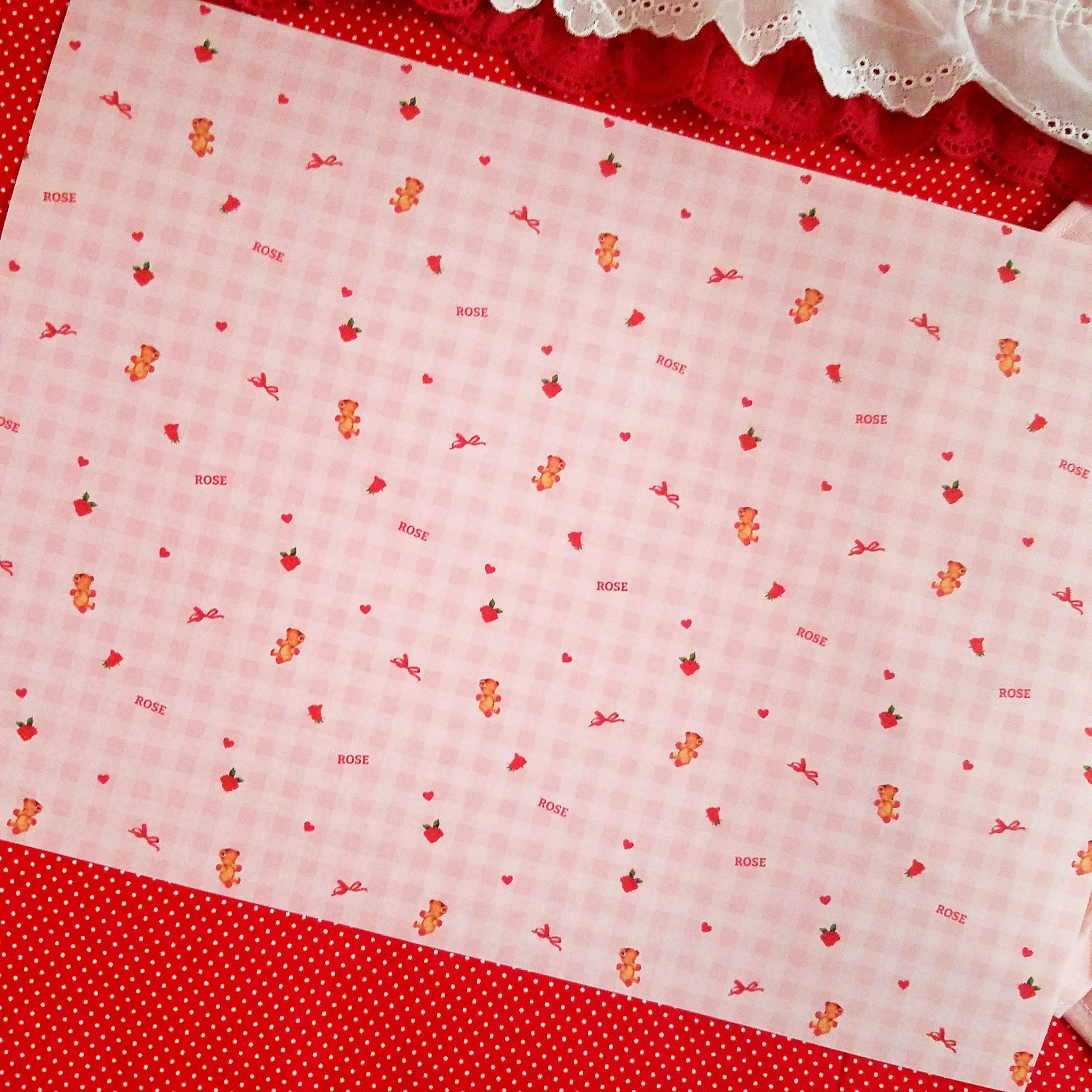 バラとクマとアナタ |A4/片面/純白ロール/ラッピングペーパー #c12