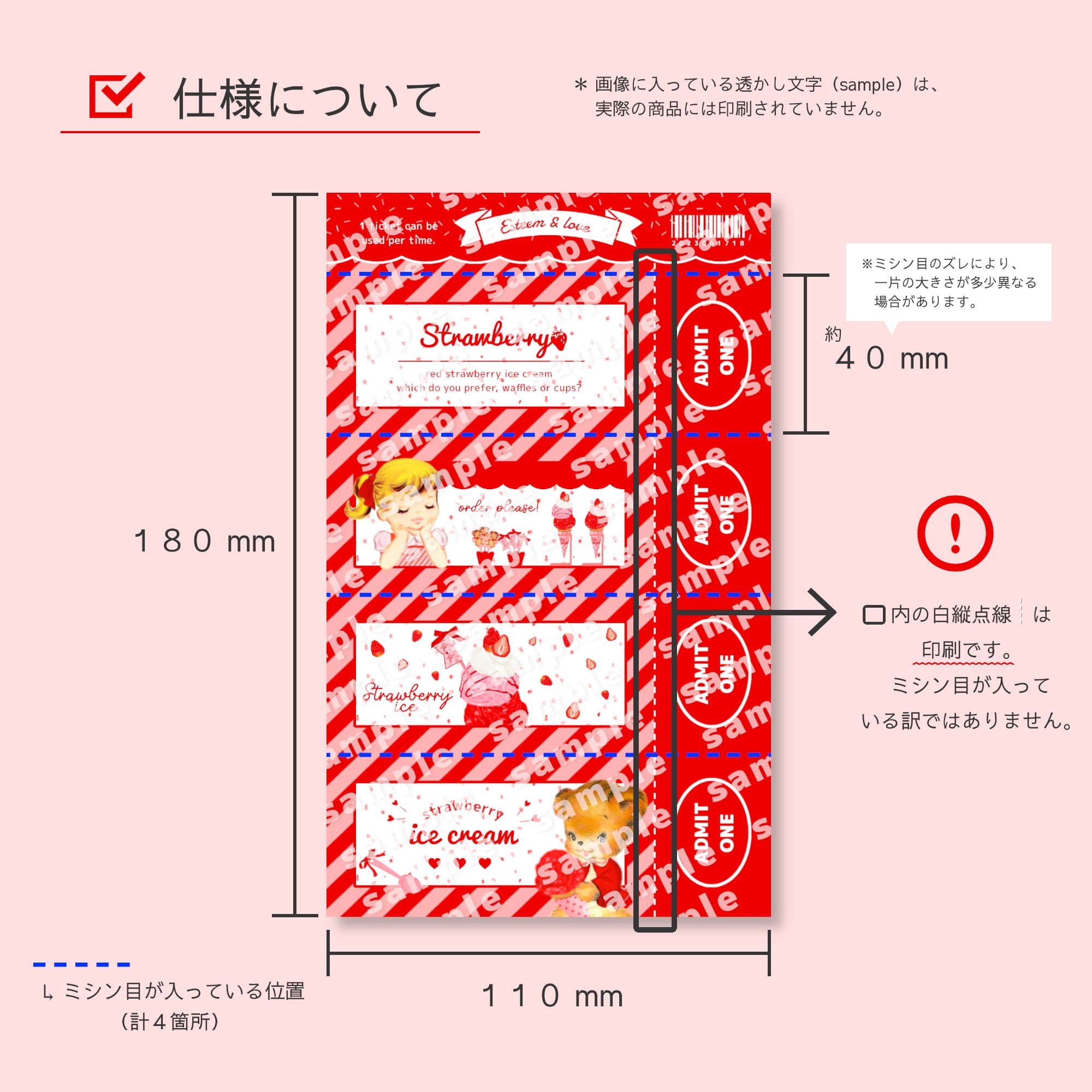 真っ赤なアイスはいかが? |チケットメモ/両面/上質紙110kg #b45