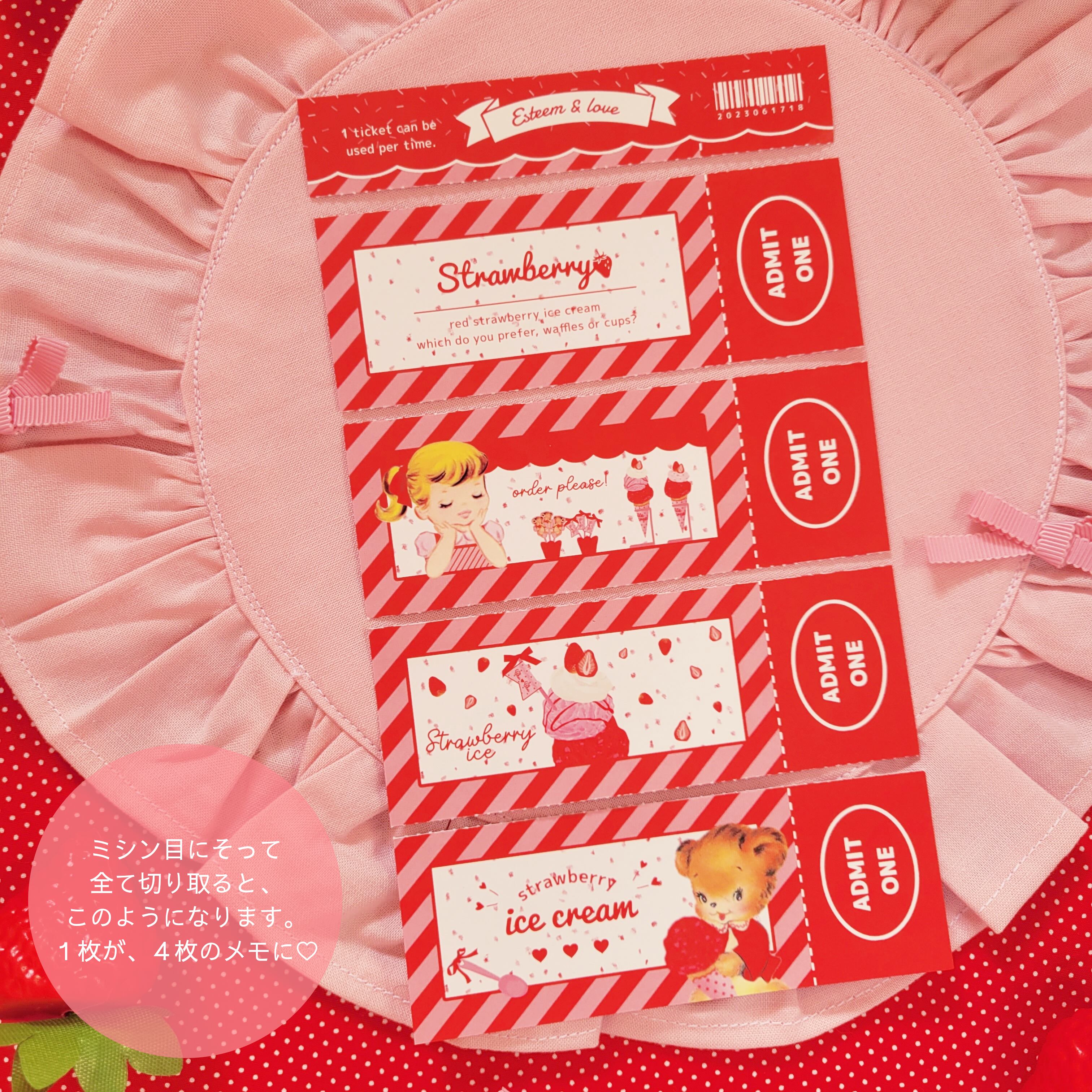 アイスクリーム屋さんのチケットをイメージして、ペリペリ切り取って楽しめるメモができました *。